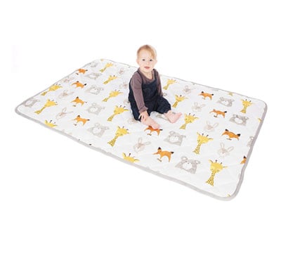 Cada lado está recubierto con una película protectora, la cual protege al patrón del desgaste, para así pueda verse siempre como nuevo. Además, cuenta con un tratamiento impermeable el cual hace que limpiarlo sea mucho más fácil, así no quedarán rastros de manchas. Por último, la superficie es antideslizante, así tu bebé no corre el riesgo de resbalar.