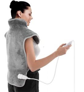 - Mantas cervicales: Tienen un diseño con forma de chaleco que permite que puedan ajustarse al cuerpo y proporcionar calor tanto en la espalda, como en el cuello y hombros.